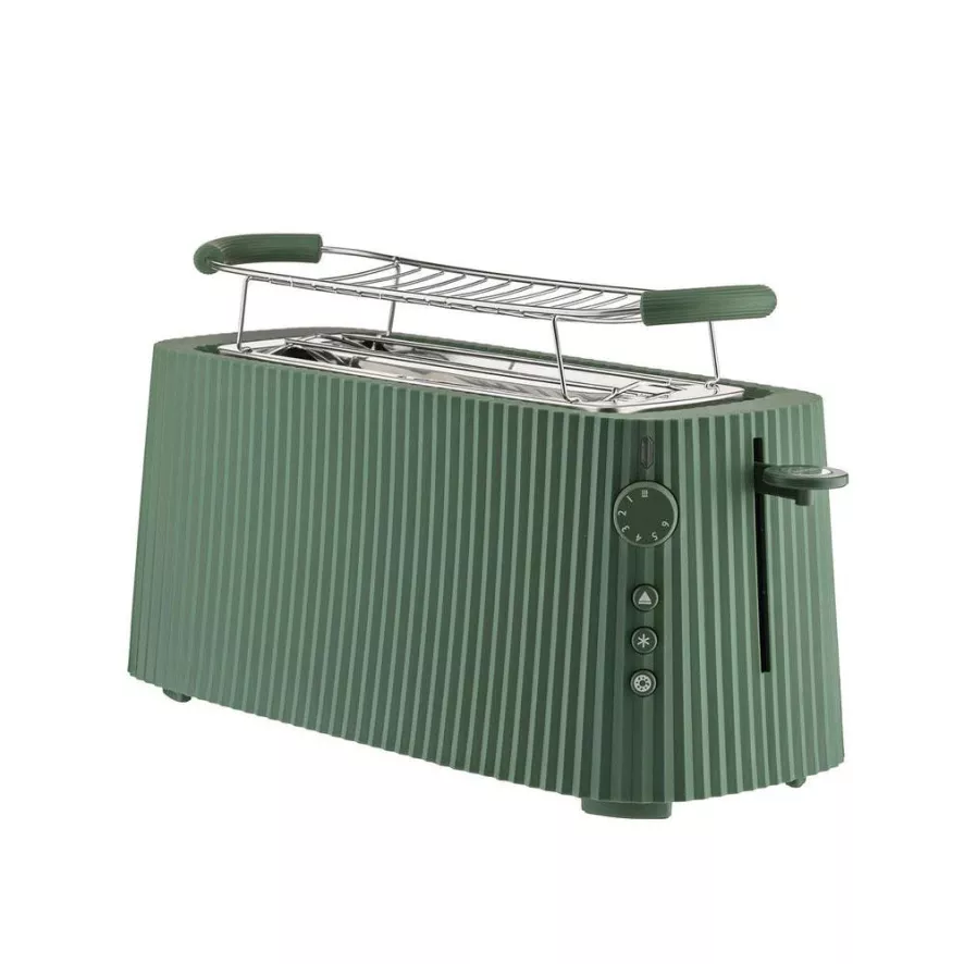 Het Plissé broodrooster lang van Alessi is ontworpen door Michele De Lucchi. Het broodrooster heeft een lengte van 46,5 centimeter, een diepte van 18,5 centimeter en een hoogte van 25 centimeter. Het broodrooster is gemaakt van thermoplastic hars en roestvrij staal. Het broodrooster heeft een rooster, een ontdooi en een opwarm functie. Het broodrooster wordt geleverd met een apart rooster-rek in roestvrij staal. Het broodrooster heeft een anti-slip basis. Het broodrooster is verkrijgbaar in verschillende kleurvariaties.