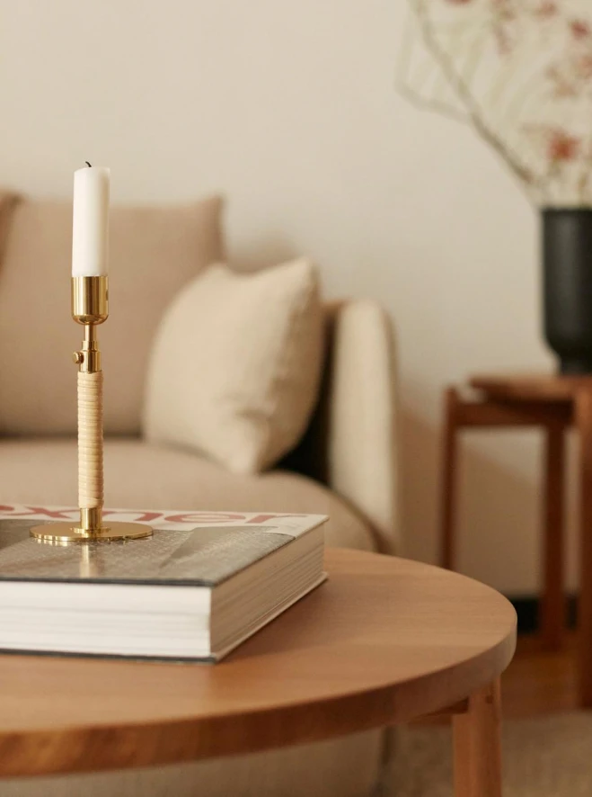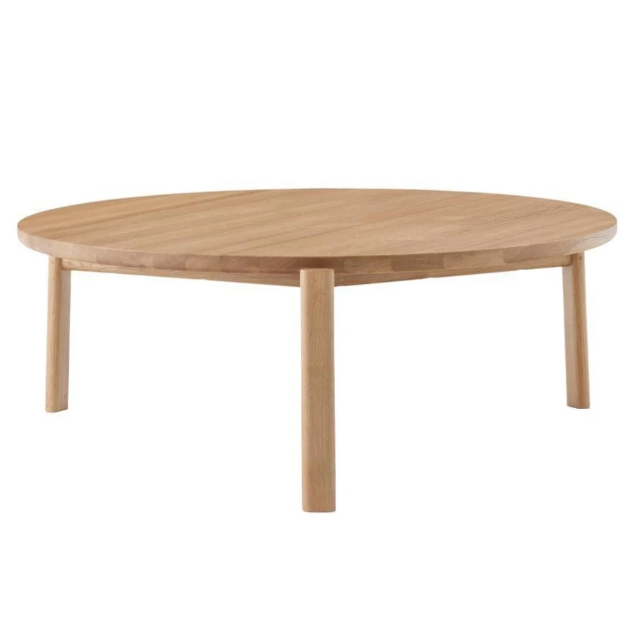 Deze salontafel is gemaakt van massief eikenhout en beschikbaar in twee varianten: zwart of naturel gelakt. De salontafel heeft een hoogte van 33 centimeter en het tafelblad heeft een diameter van 90 centimeter. Deze salontafel is er ook nog in twee kleinere varianten; met een diameter van 50 centimeter en een diameter van 70 centimeter. Ook is er een Passage kruk beschikbaar.