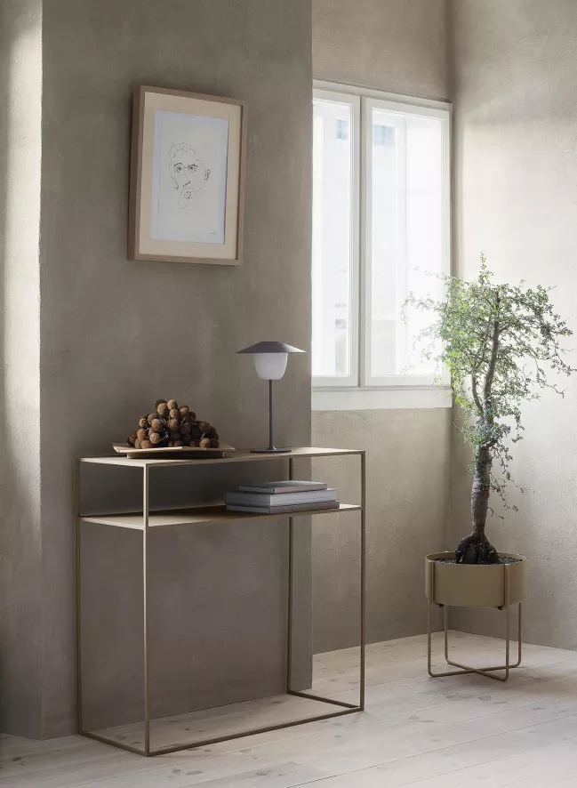 De Fera sidetable console tafel van Blomus is 85 centimeter lang, 35 centimeter breed en 80 centimeter hoog. De sidetable is gemaakt van gepoedercoat staal en is verkrijgbaar in verschillende kleuren. Blomus adviseert het tafeltje schoon te maken met een vochtige doek.