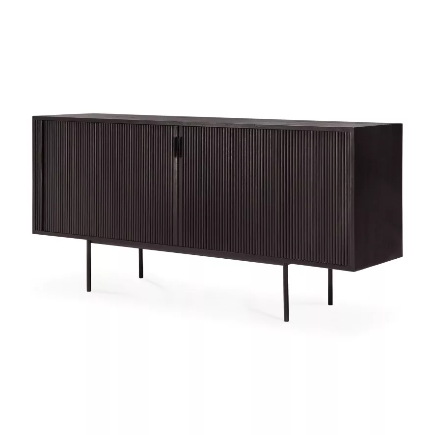 Het Roller Max dressoir 168 van Ethnicraft heeft een breedte van 168 centimeter, een diepte van 45 centimeter en een hoogte van 80 centimeter. Het dressoir is gemaakt van massief teakhout en is voorzien van twee schuifdeuren van mahoniehout waarachter verstelbare planken schuilgaan. Het geheel is afgewerkt met een beits. Dit dressoir heeft een gewicht van 57,6 kilogram en een maximum draaggewicht van 166 kilogram. Het Roller Max dressoir van Ethnicraft is in verschillende formaten verkrijgbaar.