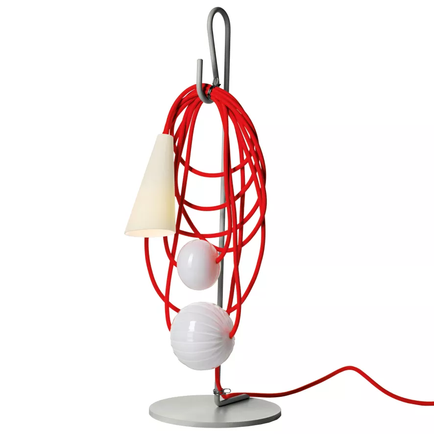 De Filo tafellamp van Foscarini is gemaakt van porselein, textiel, glas en gelakt metaal. De tafellamp is 20 centimeter breed en 58 centimeter hoog. Hij heeft een LED retrofit 5W G9 fitting. De lichtbron wordt meegeleverd. De lamp weegt 2,7 kilo. Op het snoer van de lamp bevindt zich een schakelaar. Dit snoer is 160 centimeter lang. De Filo tafellamp is beschikbaar in verschillende uitvoeringen.
