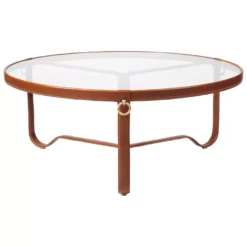 De Adnet salontafel 100 van Gubi heeft een diameter van 100 centimeter. Het ronde glazen tafelblad rust op de drie poten van zacht gebogen metaal. De tafel is afgewerkt met een handgemaakte lederen rand en is versierd met drie vergulde koperen ringen. Je kunt voor de salontafel kiezen uit verschillende kleuren. Adnet is ook verkrijgbaar met een diameter van 70 centimeter.