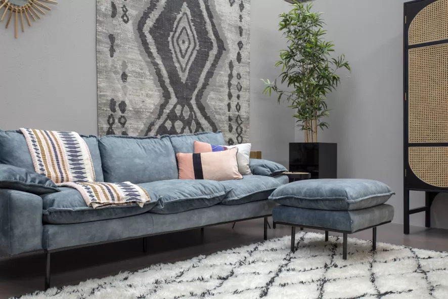 De Retro bank 3-zits van HKliving heeft een breedte van 225 centimeter, een diepte van 83 centimeter en een hoogte van 95 centimeter. De zithoogte is 46 centimeter, zitdiepte 63 centimeter en de hoogte van de armleuning is 50 centimeter. De velvet bank is gemaakt van stevig fluweel textiel van 100% polyester. De Linen bank is van 63% katoen en 37% linnen stof. De beige bank is va n92% polyester en 8% nylon. De bank heeft smalle zwart gelakte metalen poten. Je kunt voor Retro kiezen uit verschillende trendy kleuren. De bank is niet geïmpregneerd en kan het beste worden schoongemaakt met een vochtig doekje.