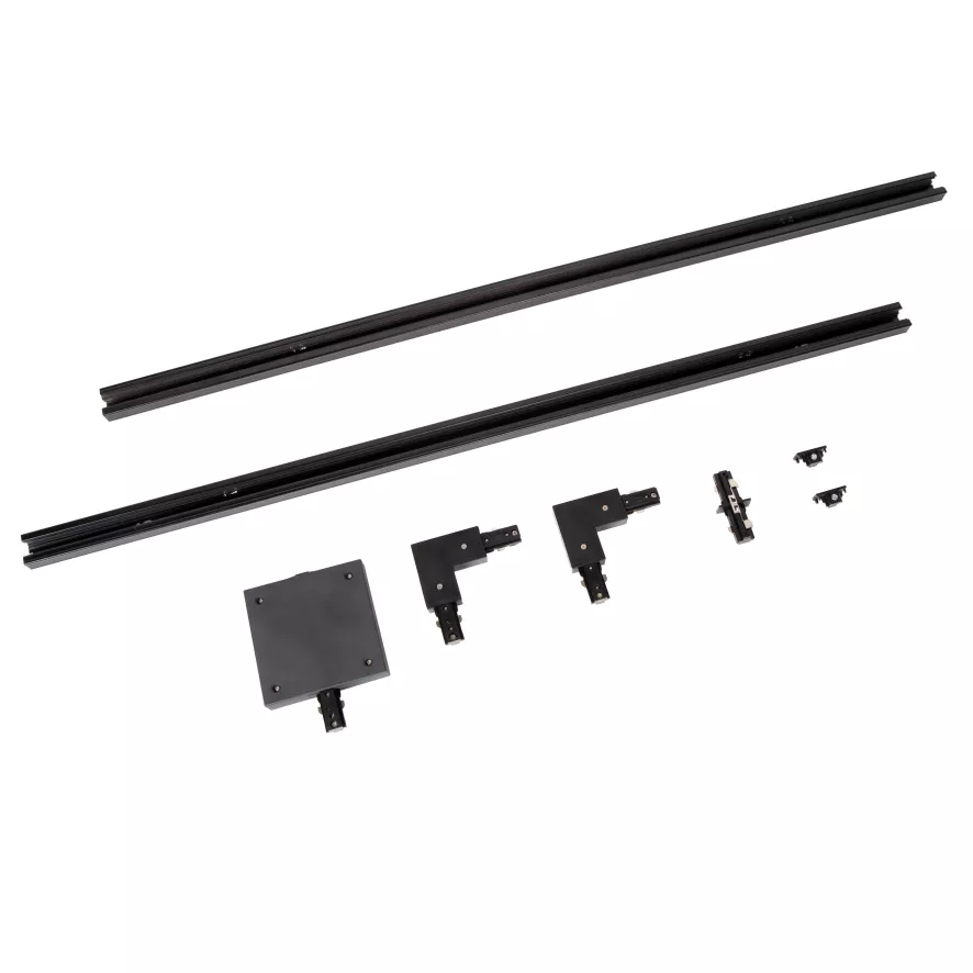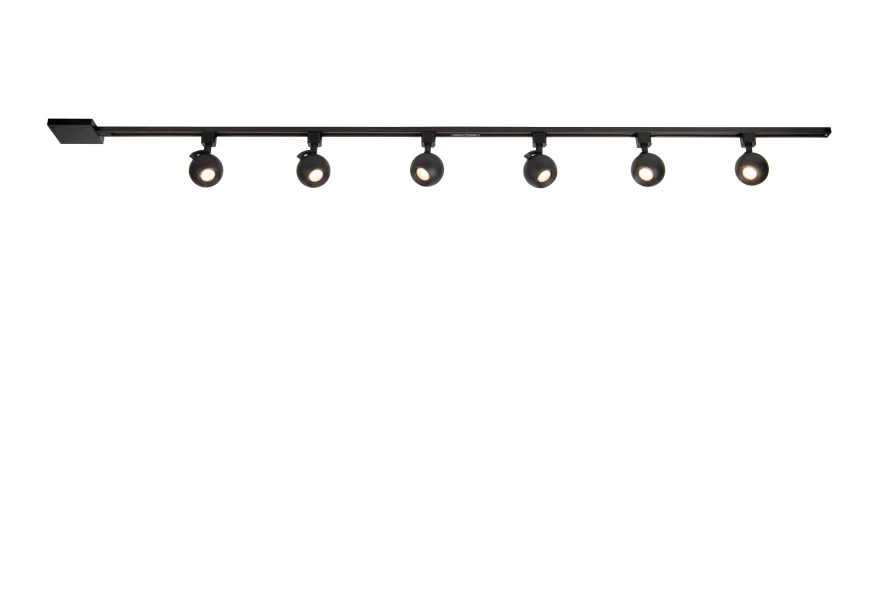 Het Track 1-fase railsysteem 2 meter zwart van Lucide is een startersset railsysteem. De set bestaat uit twee rails van één meter, een dubbele driver, een recht koppelstuk, een L-hoek links koppelstuk, een L-hoek rechts koppelstuk en twee eindkapjes. Het railsysteem is gemaakt van metaal en is zwart van kleur. Creëer jouw eigen railssysteem met bijpassende railverlichting. Het is mogelijk om maximaal vijf lampen per meter aan te sluiten, met een maximaal energieverbruik van 3500 Watt. De railspots of hanglampen klik je eenvoudig in het rails en kun je ten alle tijde verschuiven.