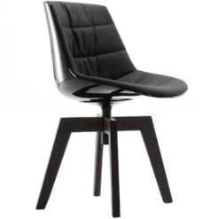 MDF Italia Flow Chair Gestoffeerde Stoel Met Bruin Eiken Onderstel, Zwarte Kuip, Grijze Finish, Londra Zwart