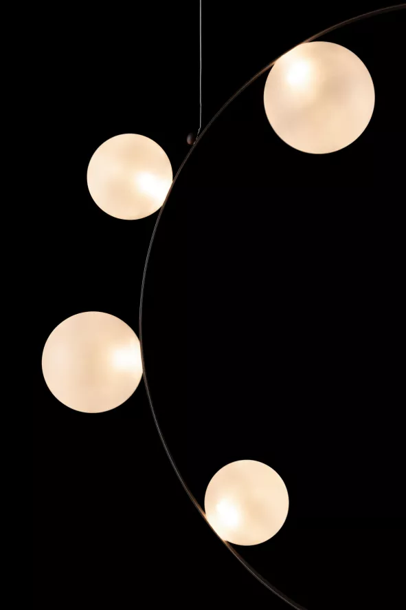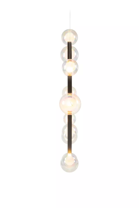 Deze hanglamp is gemaakt van metaal en glas. De lamp heeft een hoogte van 102 centimeter, een lengte van 99 centimeter en een breedte van 13 centimeter. In de lamp zitten 11 lichtbronnen met een kleurtemperatuur van 2700K en een lichtopbrengst van 655 Lumen. Deze lichtbronnen worden meegeleverd. De lamp heeft een maximaal wattage van 20. De lamp is dimbaar. Je kunt kiezen uit twee kleuren glas voor de lichtbronnen: geolied of mat. Ook is er een kleinere variant met 7 lichtbronnen.