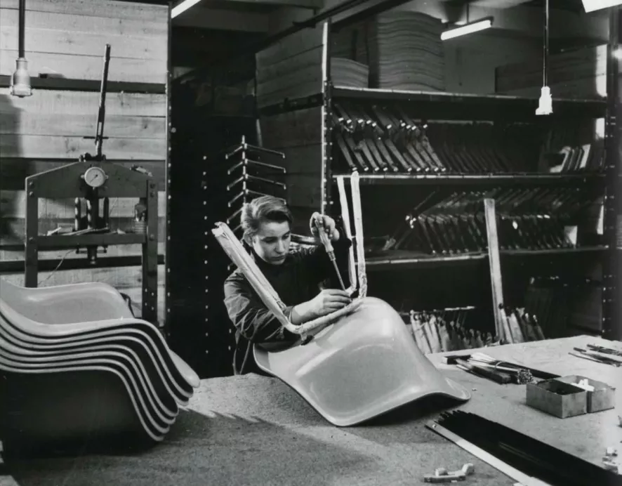 De Vitra Eames DSW Fiberglass stoel met essen honing onderstel is ontworpen door Charles & Ray Eames.