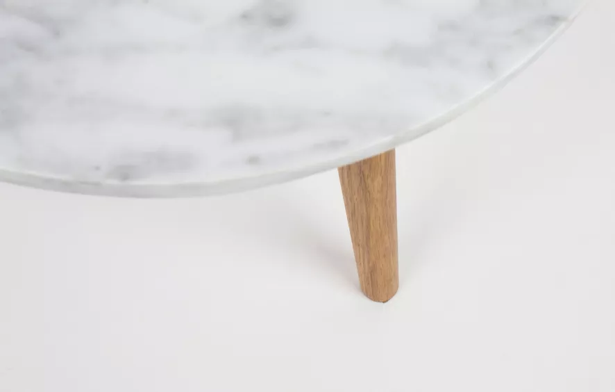 De Zuiver White Stone bijzettafel medium heeft een diameter van 40 centimeter en een hoogte van 40 centimeter. Het tafelblad is 15 millimeter dik. De bijzettafel heeft een onderstel van massief geolied eikenhout en tafelblad van marmer. Zowel het eikenhout als het witte marmer hebben de oorspronkelijke kleur behouden. Omdat de drie poten van massief hout zijn, ondersteunen ze zonder moeite het zware tafelblad. Bij deze bijzettafel bevelen wij aan gebruik te maken van onderzetters, om kringen tegen te gaan.